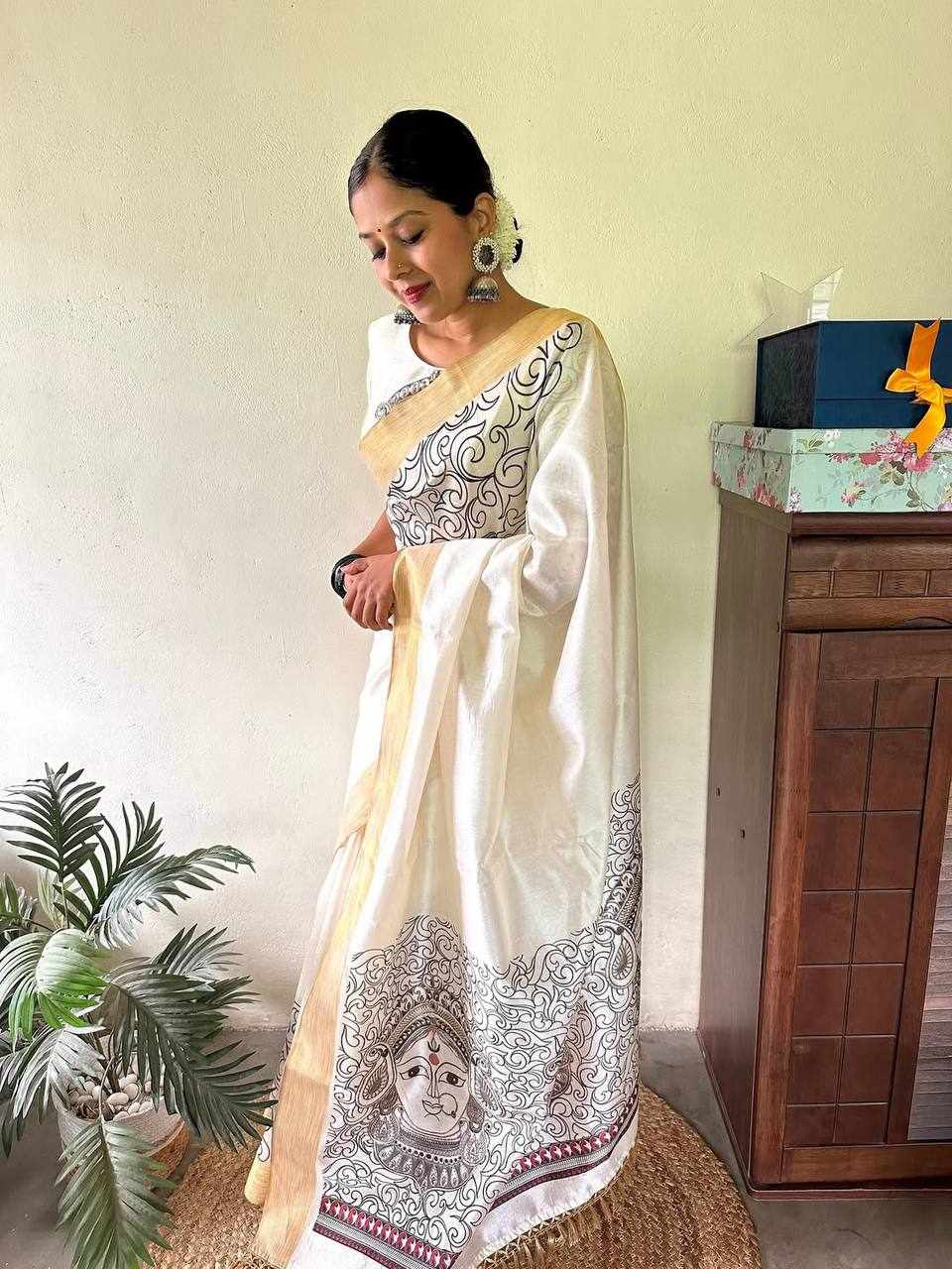 KPW 347 White Beautiful Digital Printed Saree