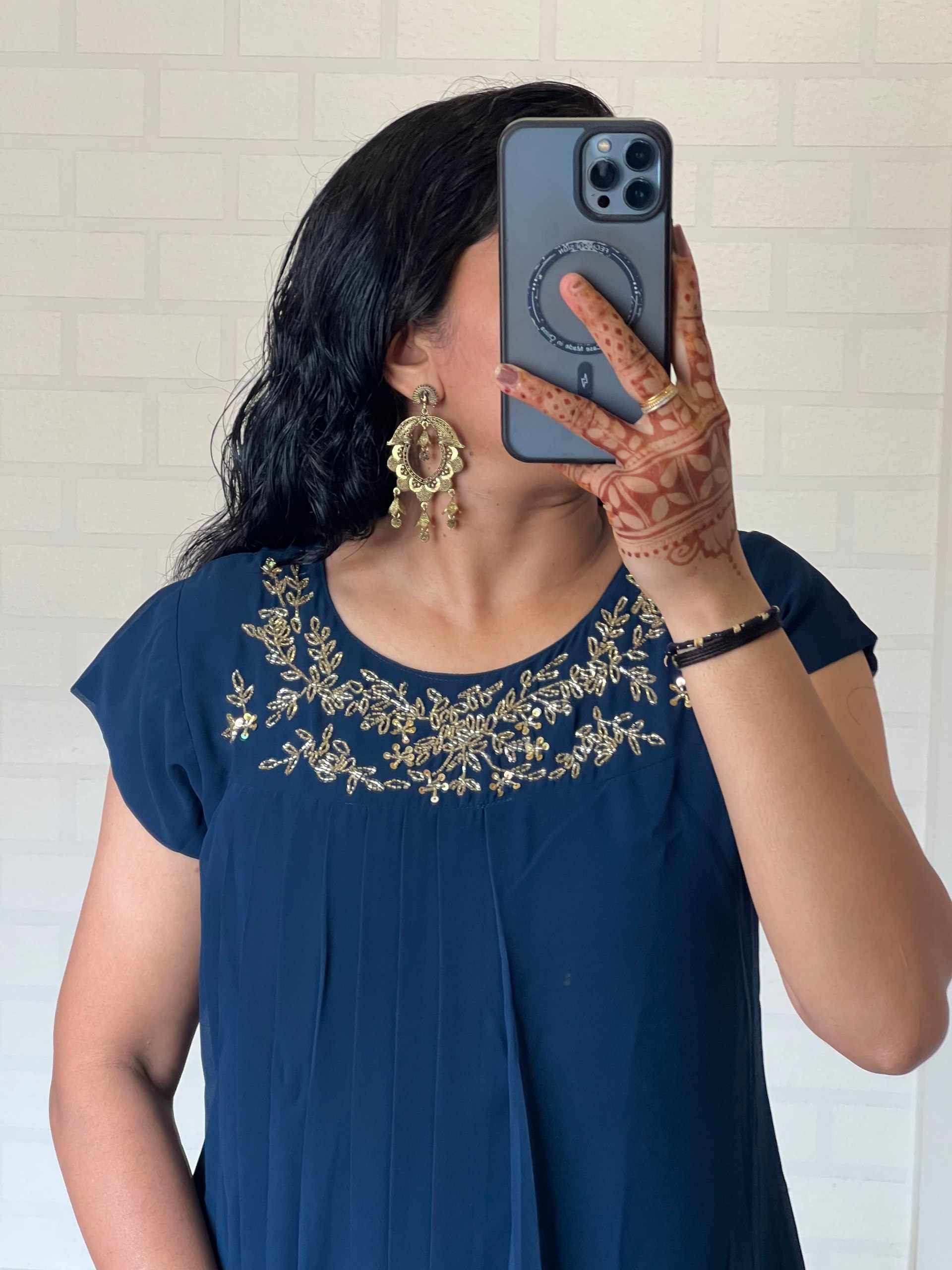 FABRIC - Blooming Georgette Handwork Kurti with Cap Designer Sleeves (Khatli - Maggam Wo