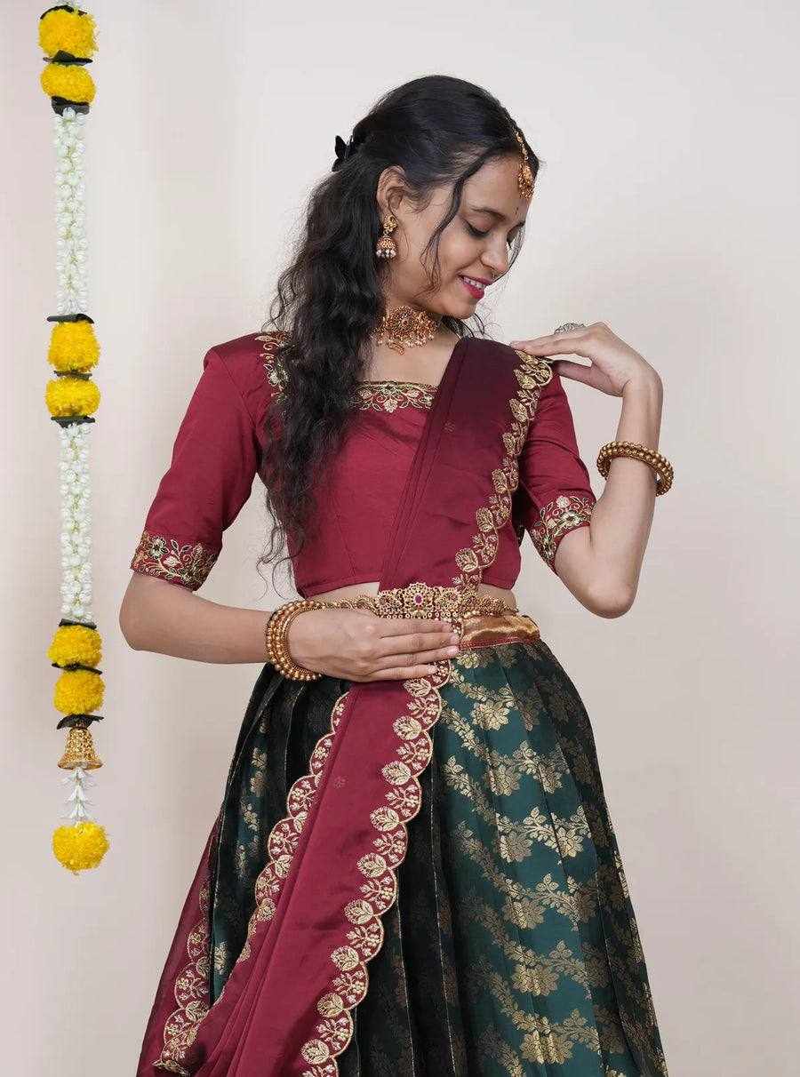 Reviews for KPW 332 Green Kanjiveram Silk Zari Lehanga