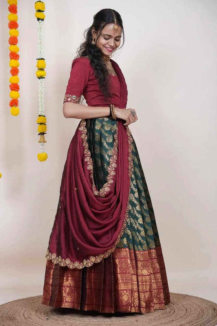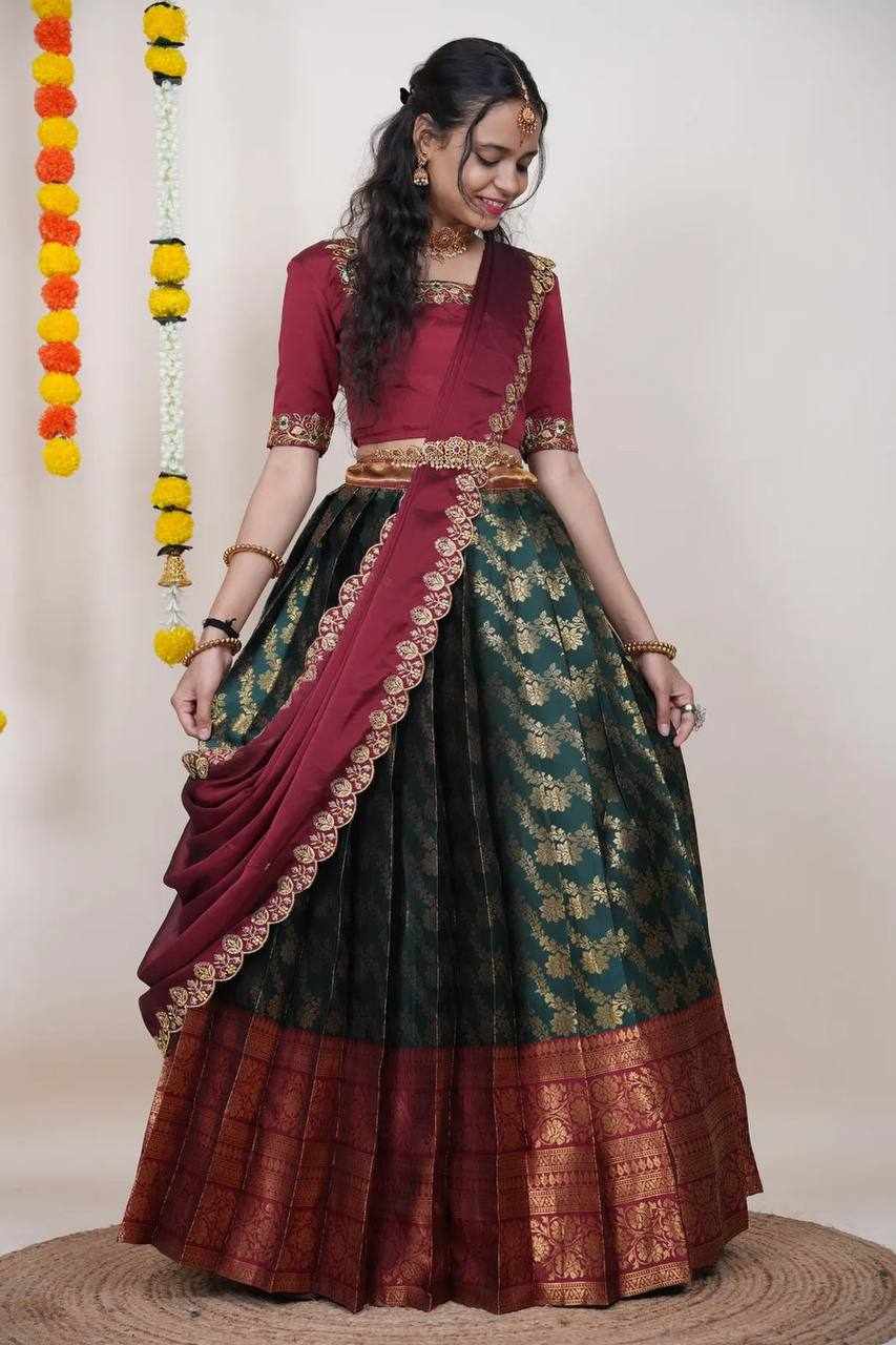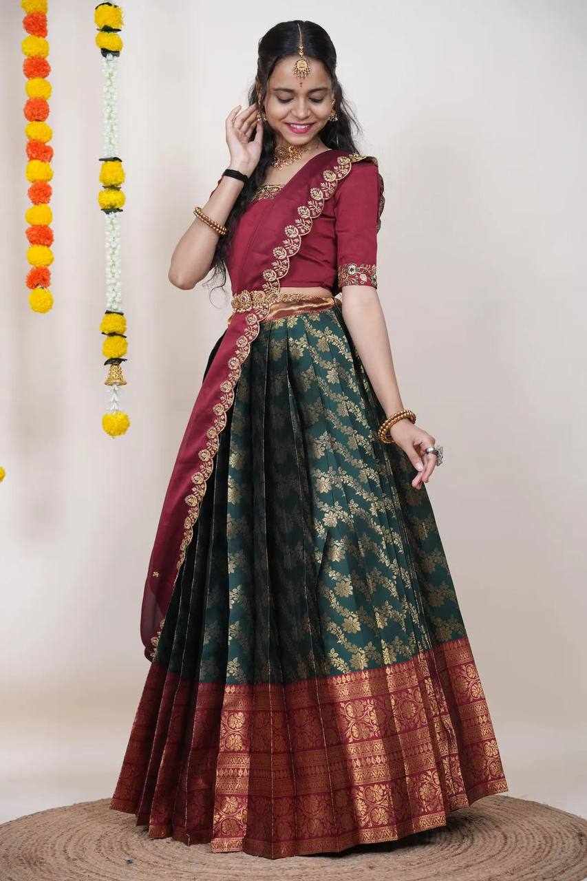 | Name : | KPW 332 Green Kanjiveram Silk Zari Lehanga |