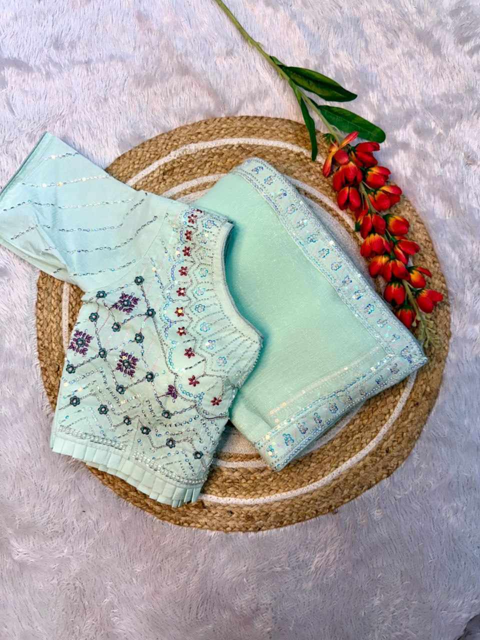 Saree Fabric: Beautiful crush shining saree with beautiful heavy handwork with beautiful rainbow sequins attached VALMOTI lace on the saree.
